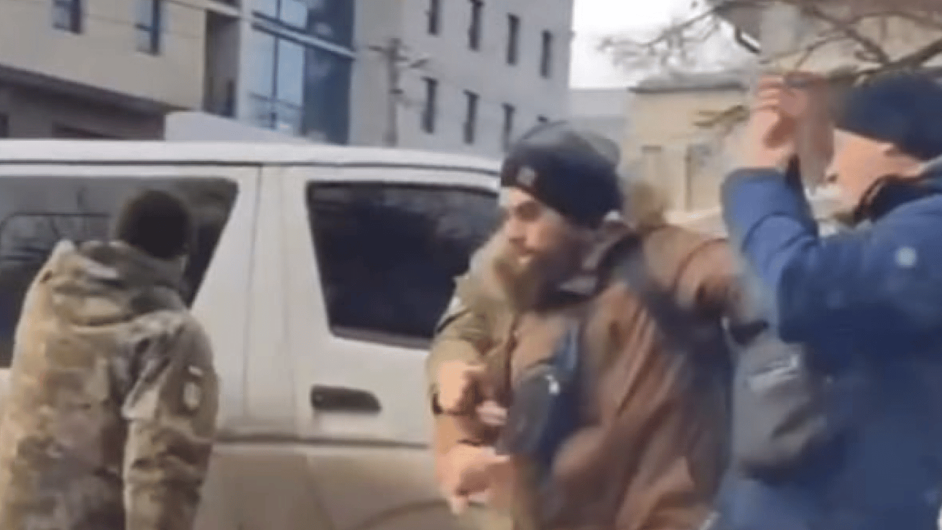 Люди у військовій формі силоміць заштовхнули чоловіка в автомобіль та поїхали.